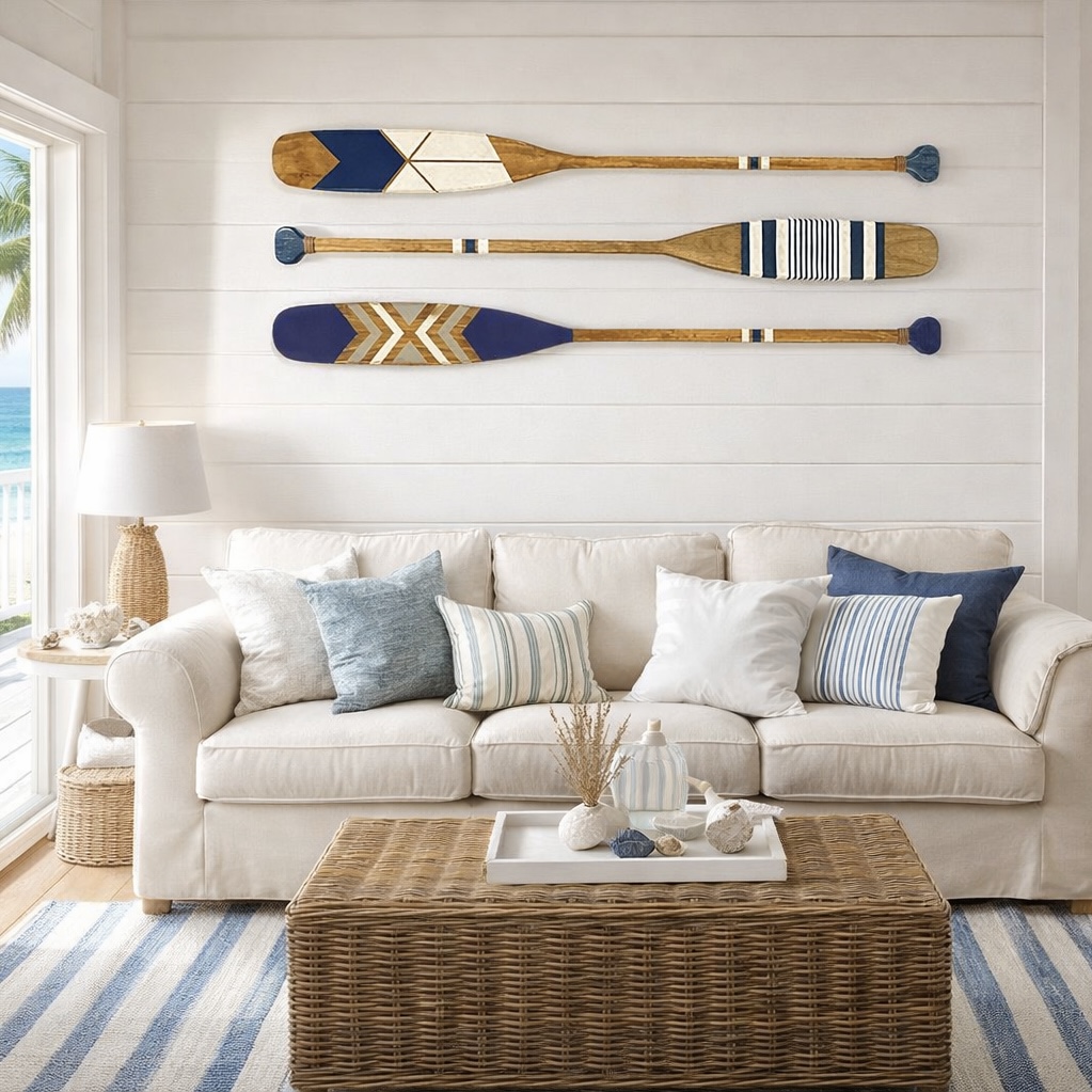 O Remo Náutico é a sensação do momento! Quer deixar sua decoração elegante e incrivelmente bonita? Aposte nos remos náuticos que o sucesso é certo. Produto produzido em madeira, pintado a mão, sendo único e especial. Personalize seu ambiente com muita elegância e originalidade.