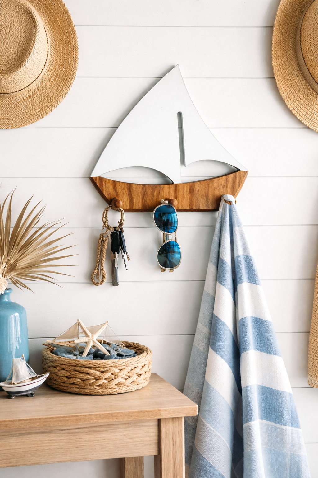 Esse enfeite náutico vai deixar sua decoração incrível! Produto produzido em madeira, pintado a mão, sendo único e especial. Personalize seu ambiente com muita elegância e originalidade.