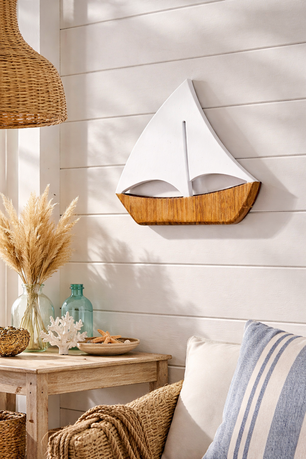 Esse enfeite náutico vai deixar sua decoração incrível! Produto produzido em madeira, pintado a mão, sendo único e especial. Personalize seu ambiente com muita elegância e originalidade.