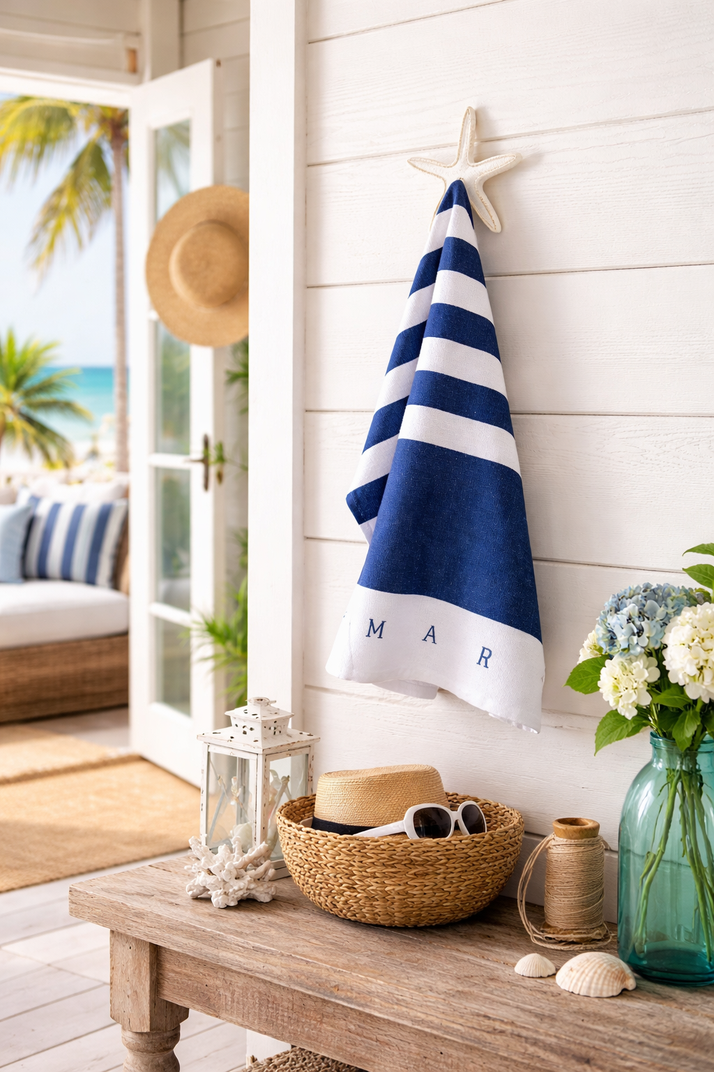 Cabideiro Estrela Branca em Madeira Decoração Náutica Praia