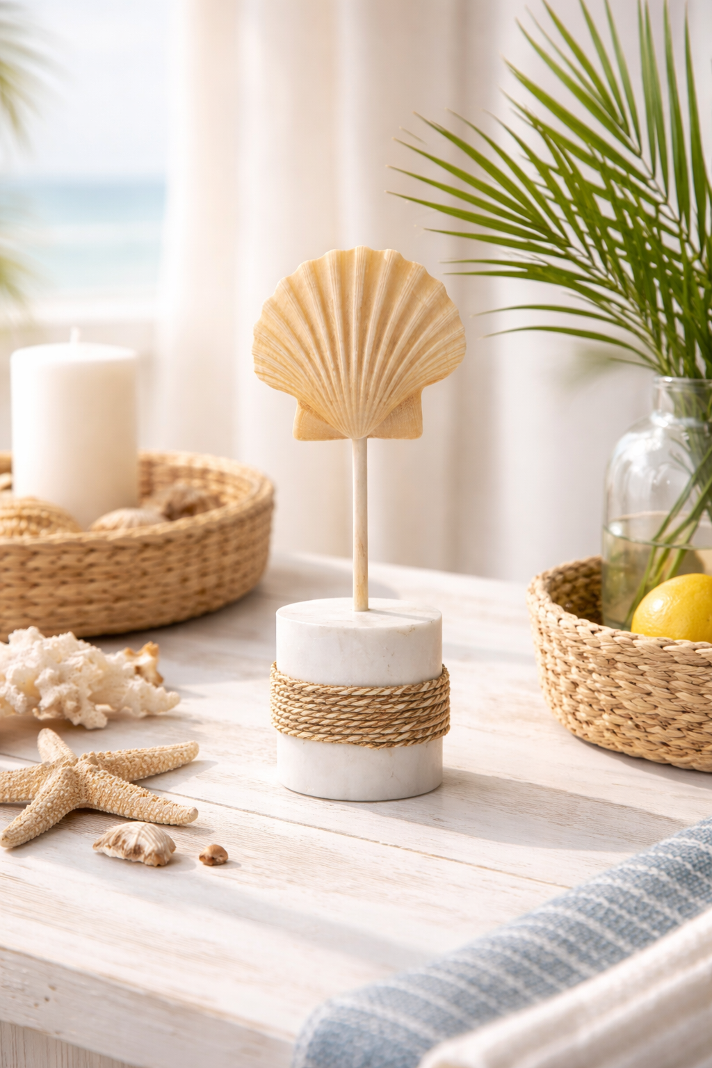 Enfeite Decorativo Pedestal Concha Bege 25cm