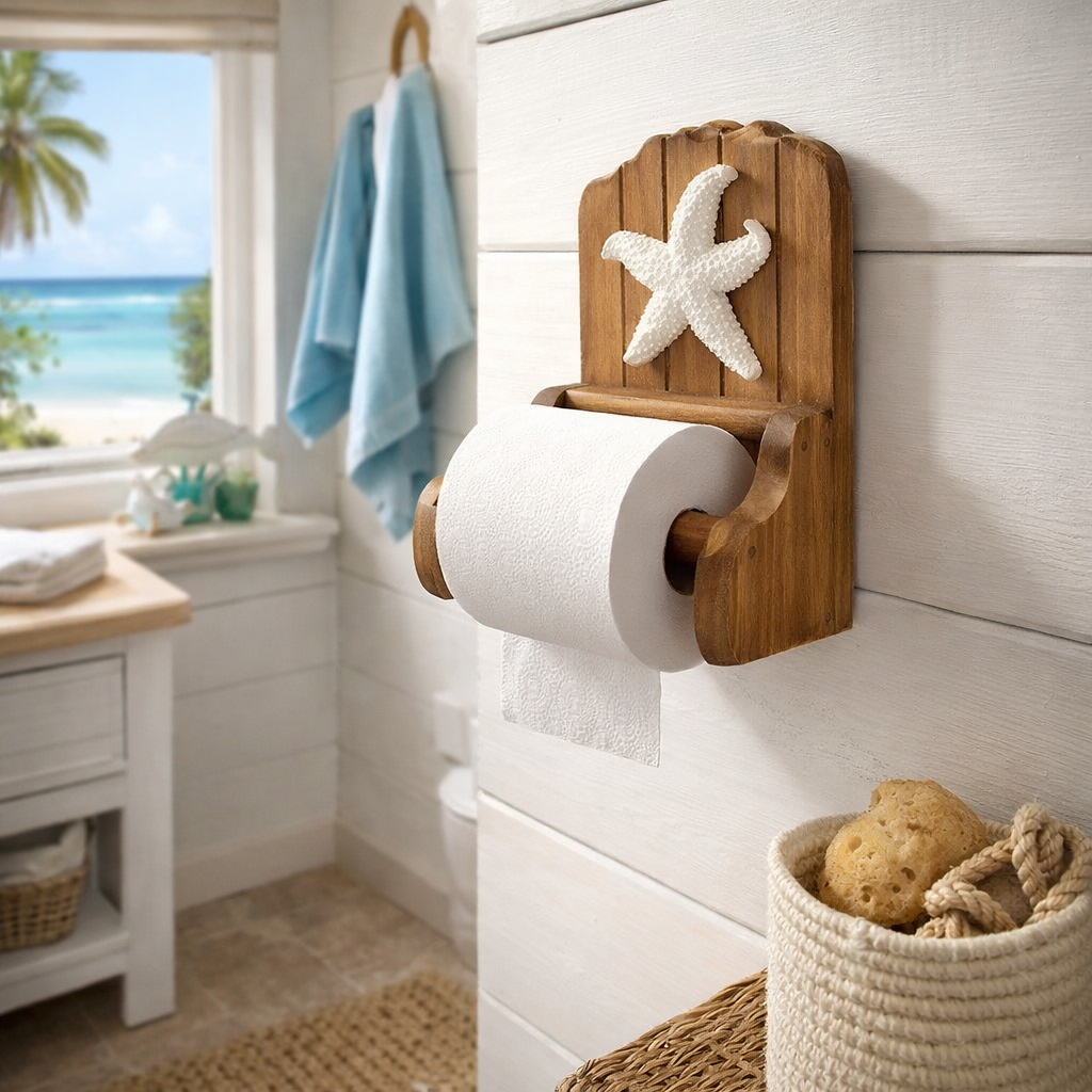 Porta Papel Higiênico Marrom com Estrela Branca Decoração Náutica