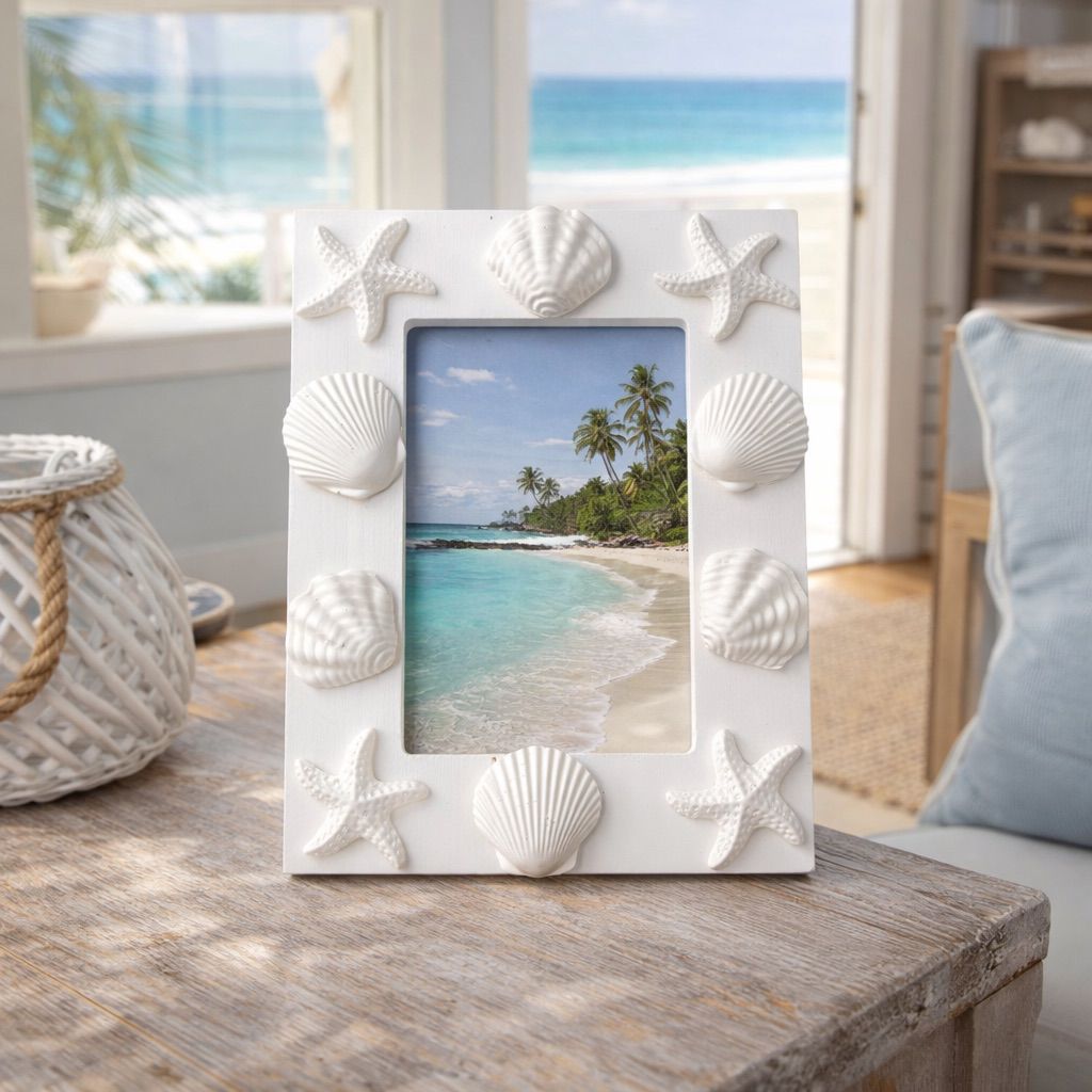 Porta Retrato Náutico Conchas Branco para Fotos 10x15cm