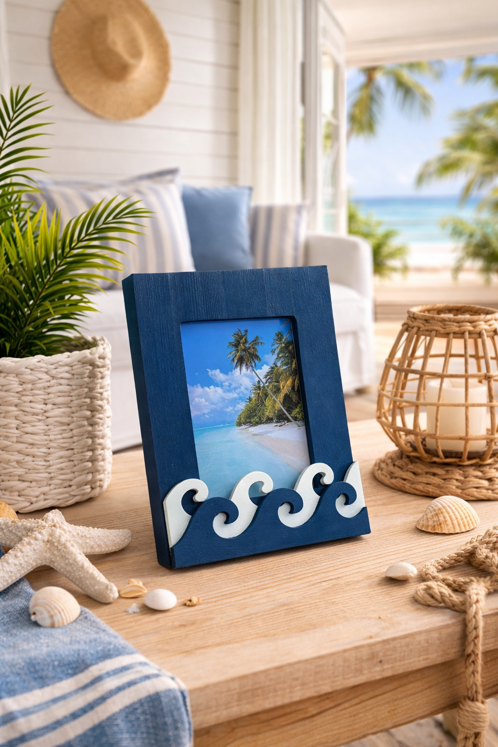 Porta Retrato Ondas Azul Escuro para Fotos 10x15cm