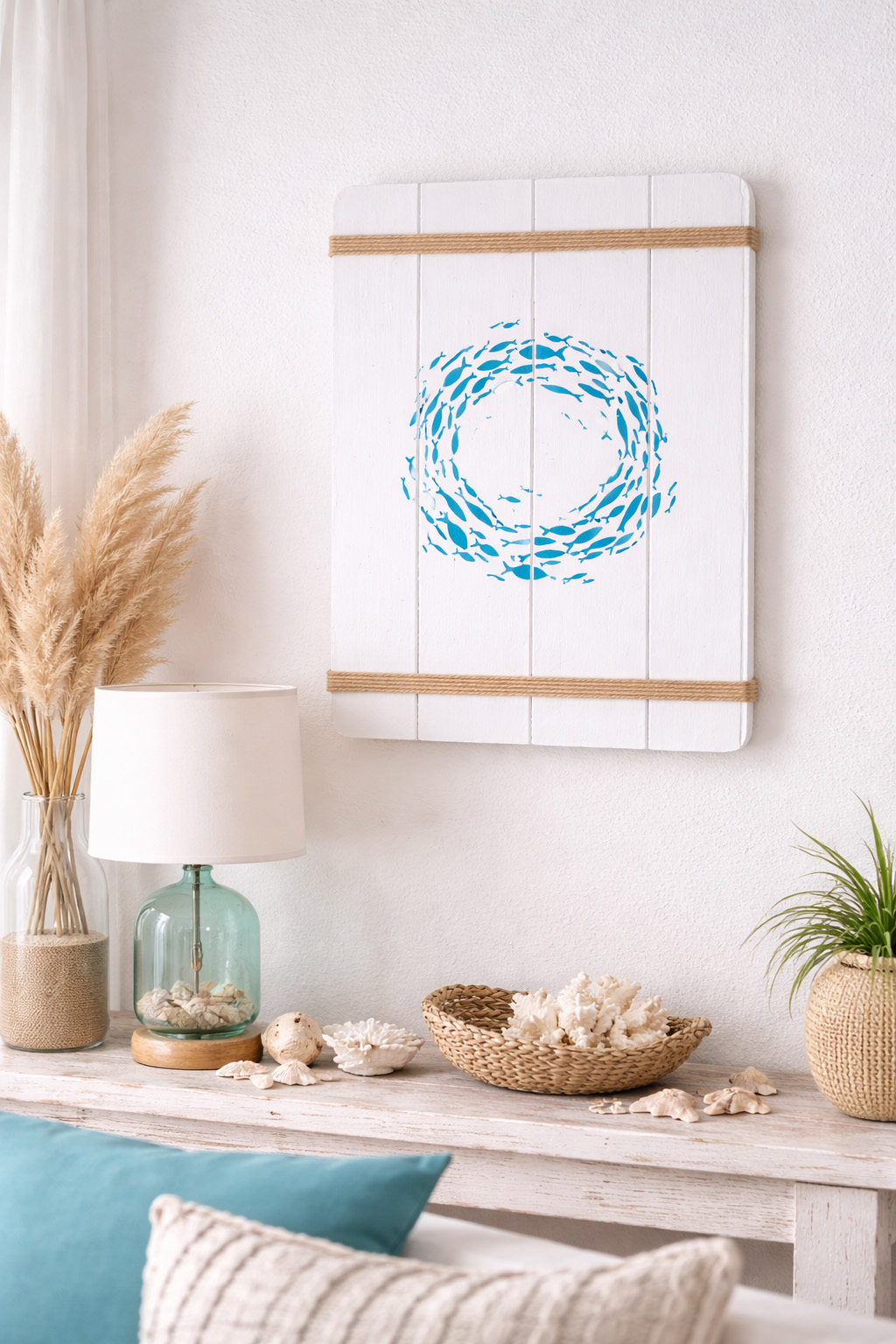 Quadro Decorativo Cardume Redemoinho em Madeira Decoração Náutica Praia