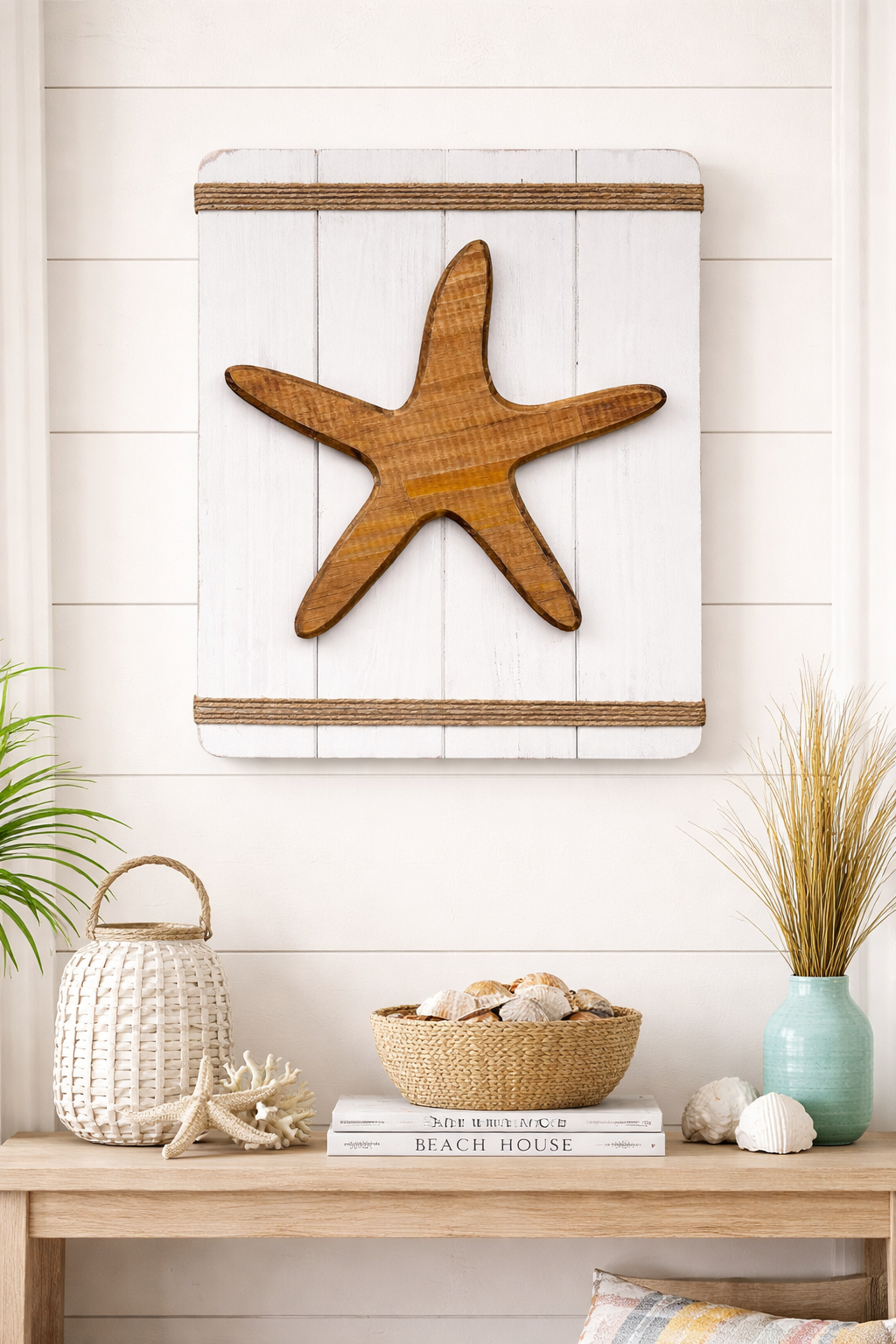 Quadro Náutico Branco Estrela em Madeira Decoração Náutica Praia
