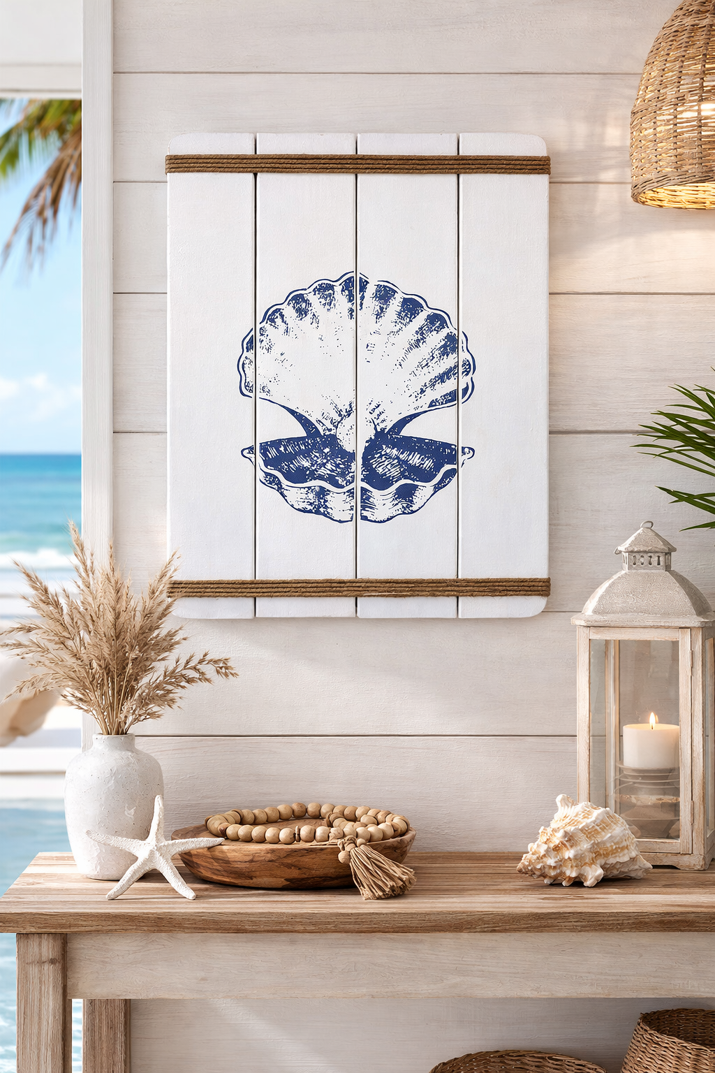 Quadro Decorativo Concha Pérola em Madeira Decoração Náutica Praia
