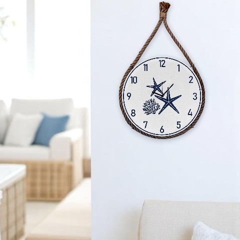 Relógio Náutico Branco Estrelas e Coral em Madeira com Corda