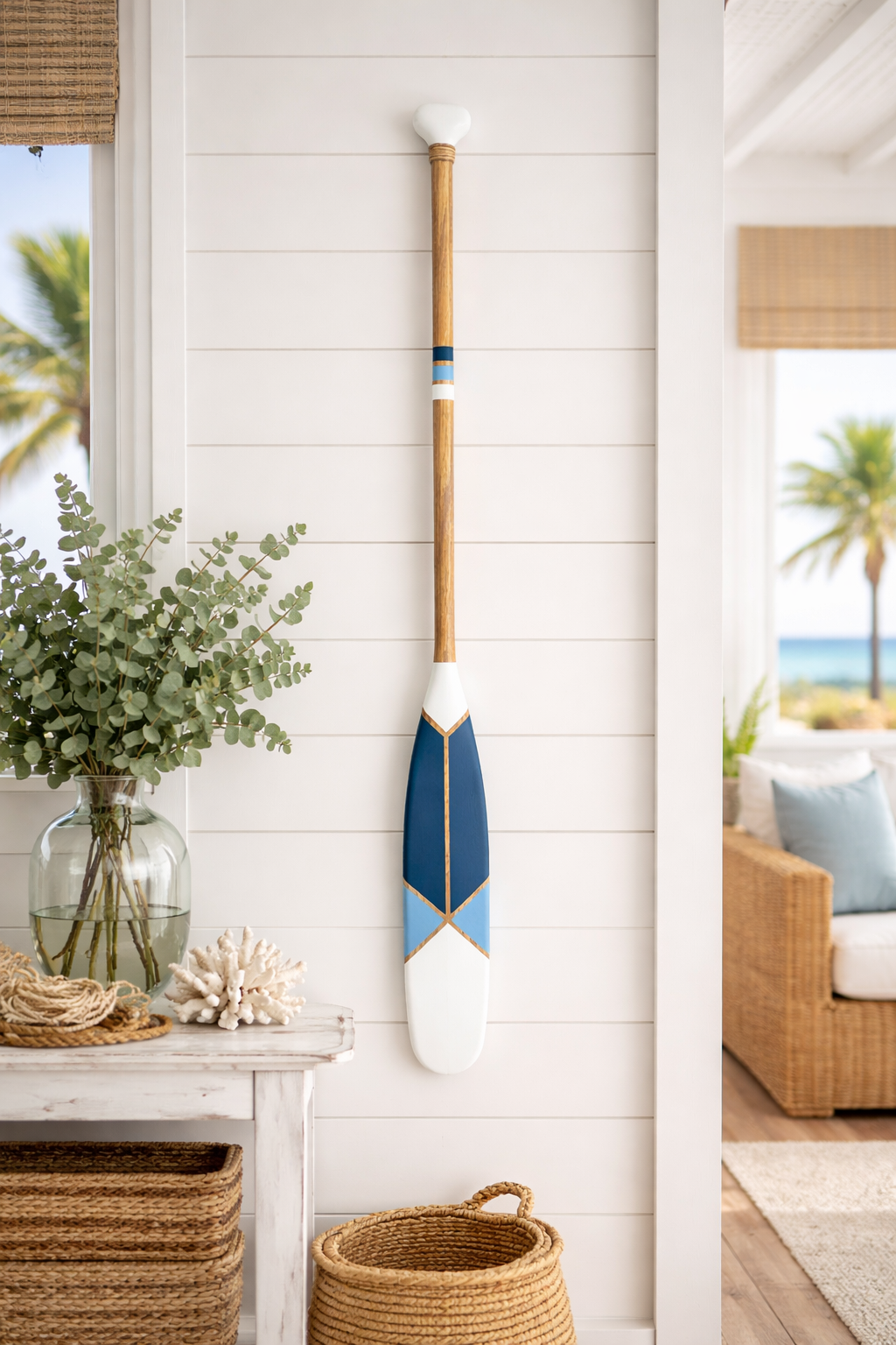 O Remo Náutico é a sensação do momento! Quer deixar sua decoração elegante e incrivelmente bonita? Aposte nos remos náuticos que o sucesso é certo. Produto produzido em madeira, pintado a mão, sendo único e especial. Personalize seu ambiente com muita elegância e originalidade.